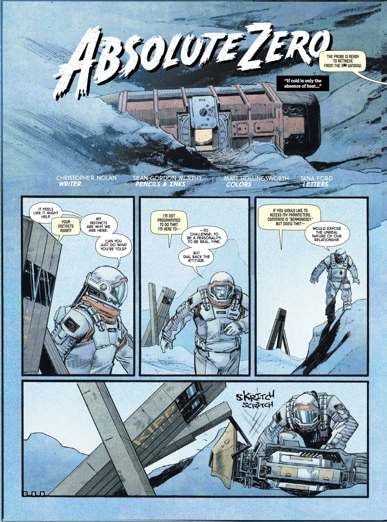 Absolute Zero is a short comic book that follows the events after Dr. Mann's arrival on Mann and prior to the arrival of the Endurance. It was written by Christopher Nolan and drawn by Sean Gordon Murphy. It was featured exclusively on Wired Magazine's main site.